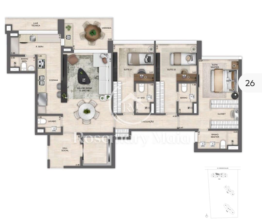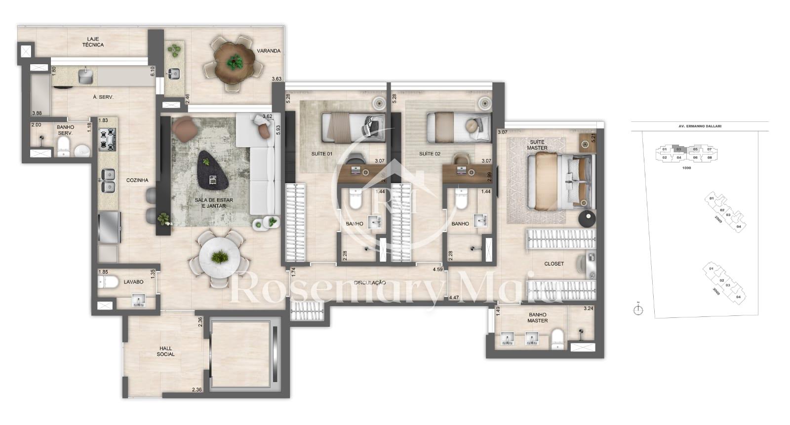 Planta com 3 suítes